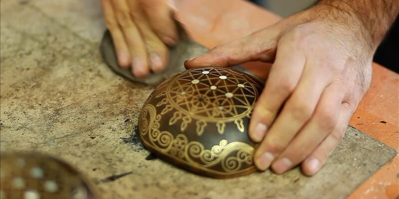 Kursiyerlere tecrübelerini aktaran ve Gaziantep’te 20 yıldır sedef işlemeciliği yapan İsmail Akyel, 2020’de ziyaret ettiği Çorum’un Boğazkale ilçesindeki Hattuşa Antik Kenti’nde görüp etkilendiği Hitit figürlerini, geleneksel tekniklerle sedef kakma sanatında kullanmaya karar verdi.