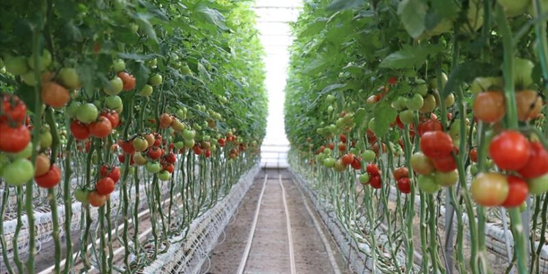 Soğuk kış günlerinde bile üretimin aksamadığı serada üretilen domates, yurt içine pazarlanıyor.