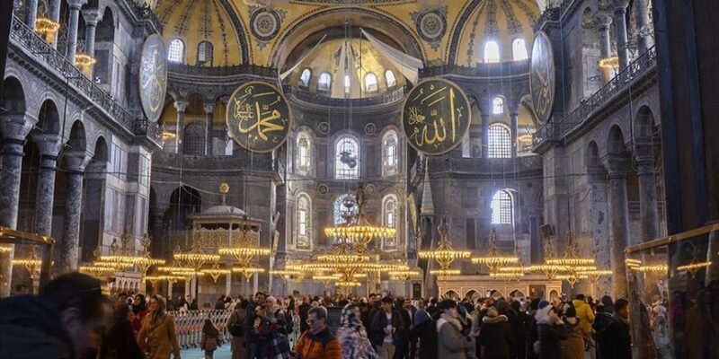 Angı, Ayasofya’nın ilk yapım döneminde Yunanistan ve adalarıyla, Mısır, Tunus ve Fransa gibi ülkelerden, Muğla, Kocaeli, Afyon, Denizli, Bilecik ve Marmara Adası’ndan getirilen taşların kullanıldığını dile getirdi.