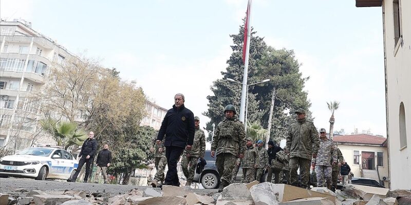 Milli Savunma Bakanı Akar, merkez üssü Kahramanmaraş’ın Pazarcık ve Elbistan ilçeleri olan ve 11 ili etkileyen “asrın felaketinin” hemen ardından beraberinde Genelkurmay Başkanı Orgeneral Yaşar Güler ile Hatay’a geldiğini, dünkü depreme de AFAD Koordinasyon Merkezi’nde yakalandığı söyledi.