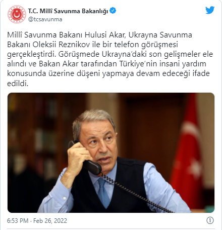 Bakan Akar, Ukrayna Savunma Bakanı Reznikov ile telefonda görüştü