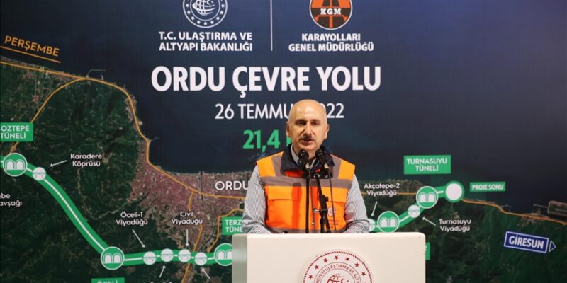 Ordu’daki önemli karayolu yatırımlarından birisinin de Akçatepe-1 Tüneli’nin yer aldığı Ordu Çevre Yolu Projesi olduğunu belirten Karaismailoğlu, Ordu Çevre Yolu Projesi’nin proje bedelinin 6 milyar 210 milyon lira olduğunu ifade etti.
