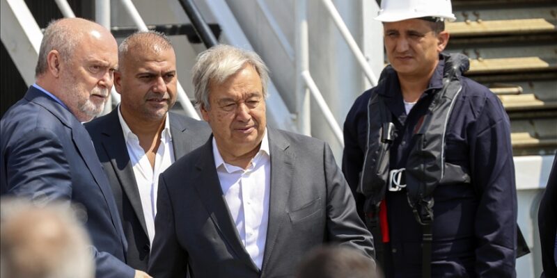 Guterres ekibiyle birlikte Marmara Denizi’nde demirli SSI INVINCIBLE II gemisine bindi. Gemi hakkında bilgi aldı.