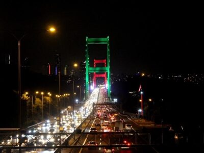 İstanbul’un iki köprüsü Tacikistan bayrağının renkleriyle aydınlatıldı