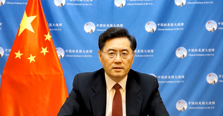 Çin’in Washington Büyükelçisi Qin Gang, video konferans yoluyla ABD’nin San Francisco kentinde düzenlenen bir toplantıda konuşma yaptı.