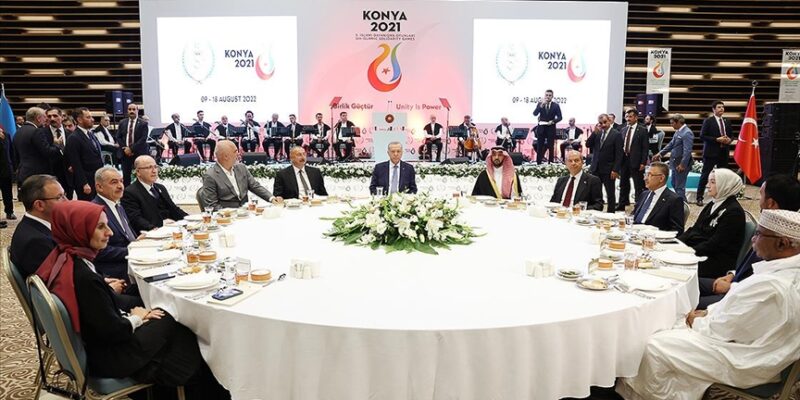 Selçuklu Kongre Merkezi’ne geçen Erdoğan, İslami Dayanışma Spor Federasyonu ve İslam İşbirliği Teşkilatı üyesi ülkelerin katılımıyla düzenlenen 5. İslami Dayanışma Oyunları’nın açılış töreni için kentte bulunan devlet ve hükümet başkanları ve diğer yetkililerle akşam yemeğinde buluştu.