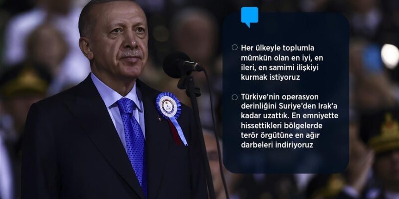 Cumhurbaşkanı Erdoğan, “Amacımız, yakın komşularımızdan başlayarak çevremizde bir ‘barış ve iş birliği kuşağı’ tesis etmektir.” diye konuştu.