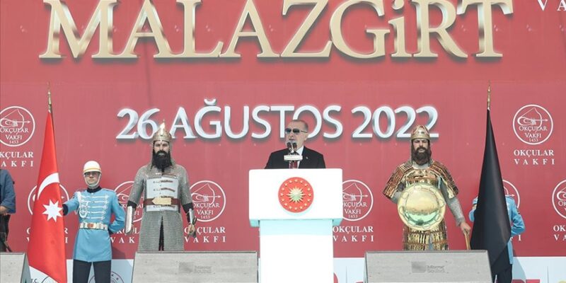 Ülkede bir dönem milli her hasret gibi Malazgirt’in de unutturulmaya çalışıldığı günlerin yaşandığını belirten Erdoğan, şairlerin şiirleriyle, tarihçilerin eserleriyle bu sinsi oyunu bozarak millete bugün şanla, şerefle, heyecanla tekrarladıkları ürünler bıraktıklarına işaret etti.