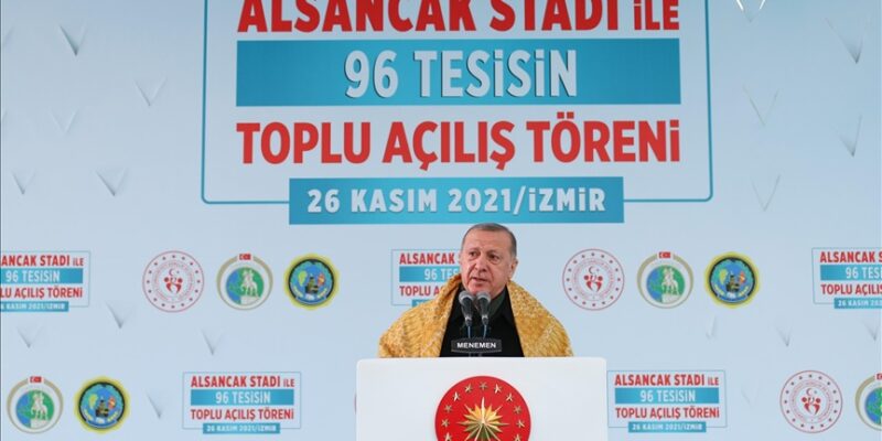 Bayraklı’daki vatandaşları yeni evlerine kavuşturma sevincinin ardından Alsancak Mustafa Denizli Stadı’na giderek hem resmi açılışı yaptıklarını hem de tesisi yerinde gördüklerini anımsatan Erdoğan, stadı Altay ve Altınordu takımlarının beraber kullanacağını aktardı.