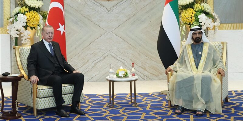 Erdoğan, Dubai Expo 2020’deki liderlik sergi alanında, Birleşik Arap Emirlikleri Devlet Başkan Yardımcısı, Başbakan ve Dubai Emiri Şeyh Muhammed Bin Raşid Al Maktum ile bir araya geldi. Erdoğan ve Al Maktum, heyetler arası görüşmeye başkanlık etti.