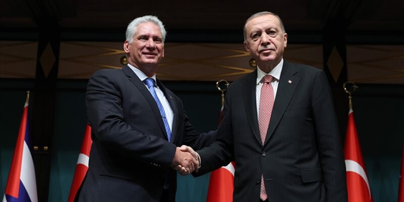 Cumhurbaşkanlığı İletişim Başkanlığından yapılan açıklamaya göre, görüşmede, çeşitli alanlarda Türkiye-Küba ilişkilerini geliştirecek hususlar ele alındı.