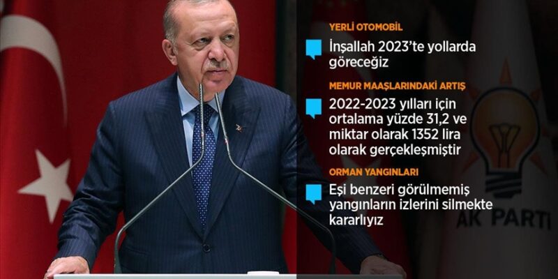 Geçen hafta AK Parti’nin kuruluşunun 20. yıl dönümüne ulaştıklarını anımsatan Erdoğan, yaşanan yangın ve sel felaketleri sebebiyle arzu ettikleri gibi bir yıl dönümü programı gerçekleştiremediklerini söyledi. Erdoğan, kuruluşundan bugüne AK Parti’ye emeği geçen herkese şükranlarını sunarak “Genel merkezimizden sandık müşahidine kadar partimizin tüm kademelerinde sorumluluk üstlenen kardeşlerimize gayretleri için teşekkür ediyorum.” dedi.
