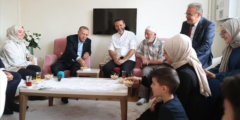 Yeşilyurt ailesinin evine konuk olan Cumhurbaşkanı Erdoğan, çay içti, ev sakinleriyle sohbet etti.