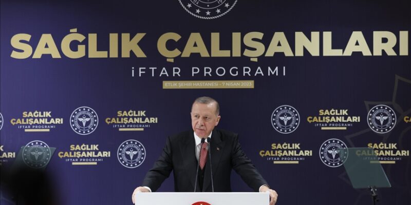 Yaşanılan afetin yol açtığı yıkımın büyüklüğünü sağlık çalışanlarının da çok iyi bildiğini dile getiren Erdoğan, depremzedelerle birlikte orada görevli kamu personelinin de devletin ilk günden itibaren gösterdiği olağanüstü çabanın tanığı olduğunu belirtti.