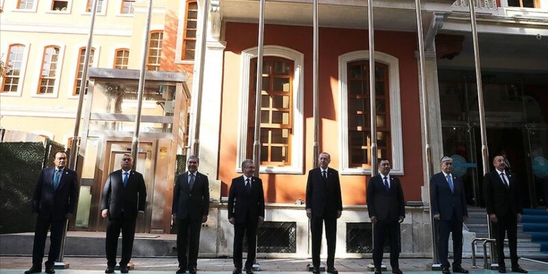 Cumhurbaşkanı Erdoğan, Demokrasi ve Özgürlükler Adası’nda düzenlenecek Türk Konseyi 8. Zirvesi kapsamında İstanbul’da bulunan üye ülkelerin devlet başkanları ile açılış töreni için Sultanahmet’teki Türk Konseyi Genel Sekreterliği binasında bir araya geldi.