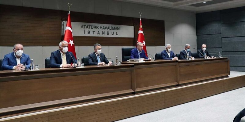 Açıklamaların ardından apronda bulunan askeri tören kıtasını selamlayan Erdoğan’ı, Cumhurbaşkanı Yardımcısı Fuat Oktay, İstanbul Valisi Ali Yerlikaya, AK Parti İstanbul İl Başkanı Osman Nuri Kabaktepe ve AK Parti İstanbul Milletvekili Ahmet Hamdi Çamlı uğurladı.