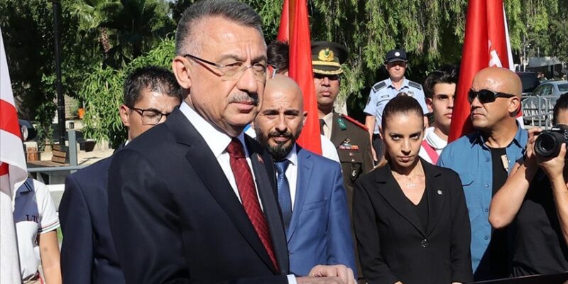 Kuzey Kıbrıs Türk Cumhuriyeti’nde (KKTC) düzenlenen 20 Temmuz Barış ve Özgürlük Bayramı kutlamalarında konuşan Oktay, sözlerine, KKTC kurucu Cumhurbaşkanı Rauf Denktaş ve egemenlik mücadelesinin önderlerinden Dr. Fazıl Küçüğe rahmet dileyerek başladı.