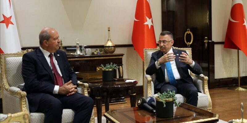 Cumhurbaşkanı Yardımcısı Fuat Oktay ve KKTC Cumhurbaşkanı Ersin Tatar, Cumhurbaşkanlığı Külliyesi’nde ortak basın toplantısı düzenledi.