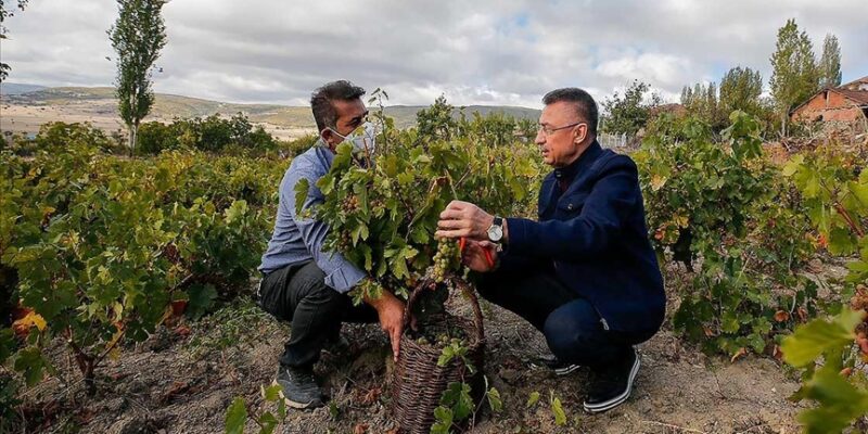 Cumhurbaşkanı Yardımcısı Oktay, memleketi Çekerek’te üzüm hasadına katıldı