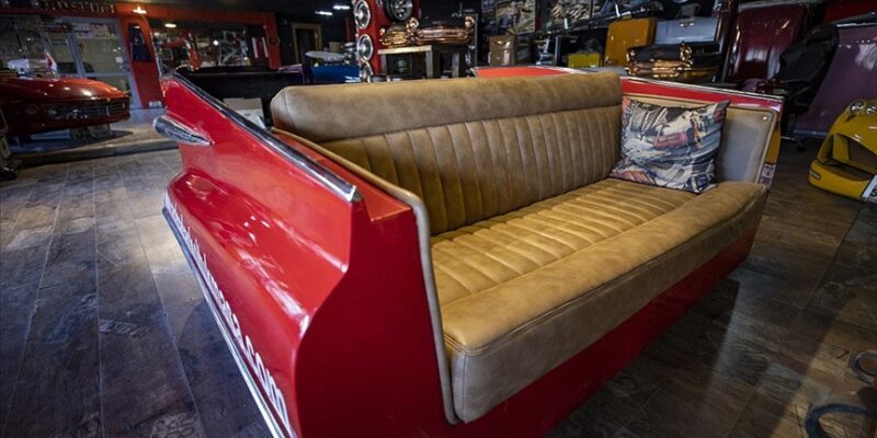 Yüksel ve ekibinin tezgahından çıkan klasik otomobil görünümlü mobilyalar, Türkiye’nin yanı sıra yurt dışından da talep alıyor.