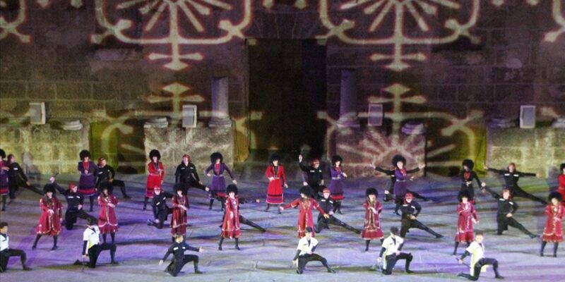 Antik çağlardan bugüne kadar sanatı barındıran Serik ilçesindeki Aspendos Antik Tiyatrosu’nun tarihini konu alan sinevizyon gösterimi ile başlayan dans gösterisinde, 85’i Anadolu Ateşi’nden, 70’i ise Gürcistanlı 155 dansçı yeteneklerini sergiledi.