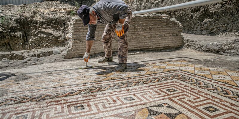 Arkeologlar tarafından alanda yapılan incelemede, kalıntıların Roma dönemine ait bir villanın duvarı olduğu ve tabanında da geometrik bezemeli taban mozaiğinin yer aldığı tespit edildi.