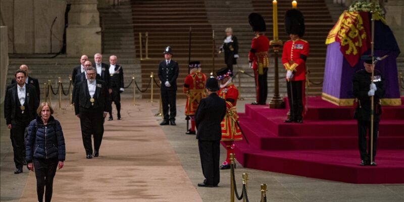 Parlamento binasındaki Westminster Hall’de katafalka konulan Kraliçe Elizabeth’in tabutunu görmek isteyen on binlerce kişi, kilometrelerce uzunlukta kuyruk oluşturmuştu.