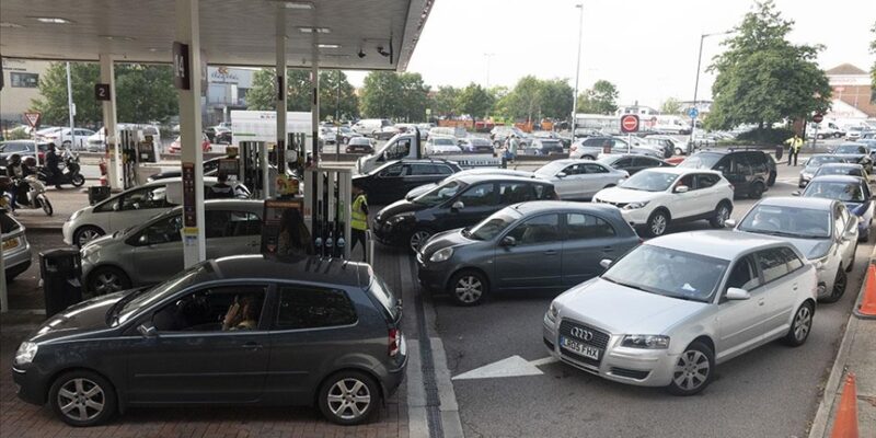 İngiltere’de enerji şirketi BP ve Tesco Alliance’ın, ülkede “çok az sayıda” petrol istasyonunun kapatılacağını duyurmasının ardından benzin istasyonları önünde uzun kuyruklar oluştu.