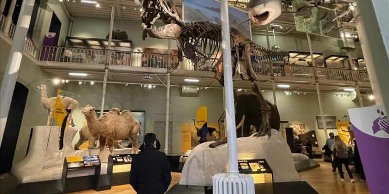 Müzenin “Doğa” bölümünde ise Montana’da 1988’de bulunan 12 metre uzunluğundaki, 6 metre yüksekliğindeki Tyrannosaurus Rex dinozor iskeleti de sergileniyor. Vahşi hayvan örneklerinin de olduğu bu bölümün tavanında ise deniz canlılarıyla kuşlar belli bir sırada yer alıyor.