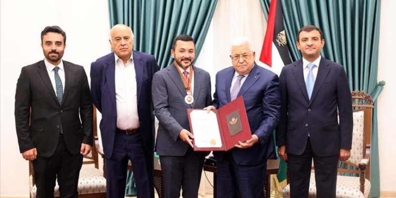 Burada konuşan Mahmud Abbas, Ayhan’a, Filistinli gençlerin davasına katkılarından dolayı bir teşekkür ve takdirin göstergesi olarak devlet liyakat nişanını sunduklarını belirtti.