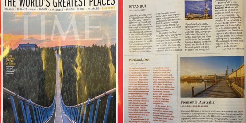 Time dergisinin her yıl açıkladığı listede, bu yıl Kovid-19 salgını sonrası ekonomik toparlanmada başarılı olan, sürdürülebilirliğe önem veren, bu alanda yatırımlar yapan ve olumlu yönde büyüyen, ziyaret edilmesi tavsiye edilen 50 şehre yer verildi.