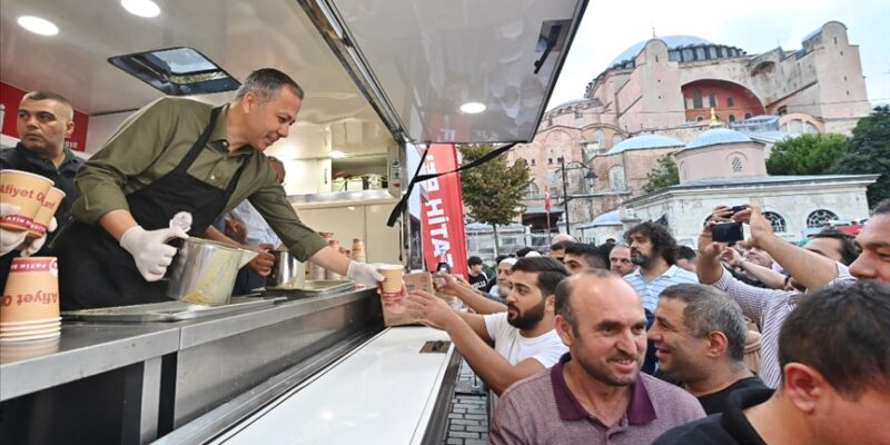 Cami çıkışında vatandaşlara çorba ikramında bulunan Yerlikaya, yaptığı açıklamada, “Ayasofya-i Kebir Cami-i Şerifi’nde Roman kardeşlerimizle buluştuk. Ayasofya’mızın huzur ikliminde, cami çıkışında birlikte içilen çorbanın tadı da bir başkaydı.” dedi.