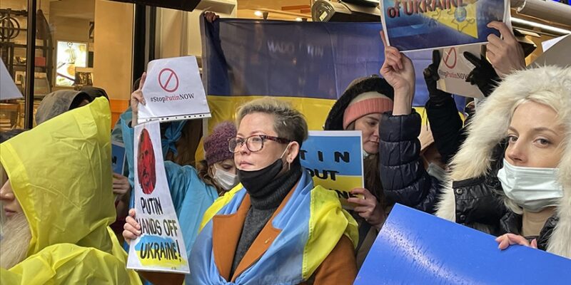 İstanbul’da yaşayan Ukraynalılardan Rusya’nın askeri müdahalesine protesto