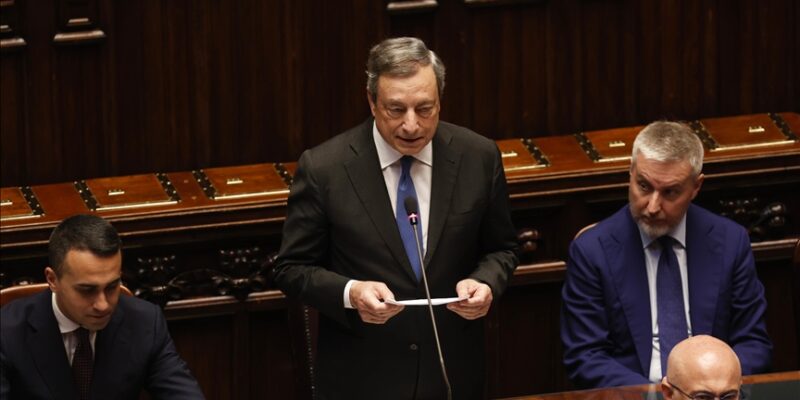 Mario Draghi liderliğindeki geniş katılımlı koalisyon hükümeti, Kovid-19 salgınının yol açtığı sağlık ve ekonomik kriz koşullarında ulusal birlik hükümeti olarak 13 Şubat 2021’de göreve gelmişti. Draghi hükümetine, İtalyan parlamentosunda temsil edilen 10 siyasi parti destek veriyordu.