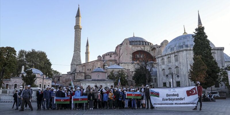 Ayasofya-i Kebir Camii’nin önünde gerçekleştirilen etkinliğe, TÜGVA, Azerbaycan Gençlik Vakfı ve bazı sivil toplum kuruluşu üyeleri, öğrenciler ve Azeri gaziler katıldı.