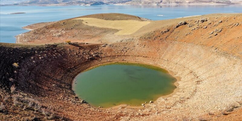 Keban Baraj Gölü’nde suların çekilmesiyle dev obruk ortaya çıktı