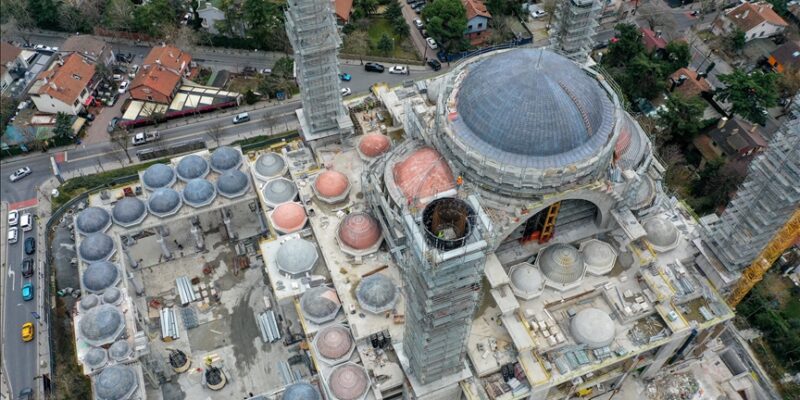 “Şadırvan avlusunun sütunları, sütun başlıkları, bilezikleri takıldı. Avludaki kubbelerimizin betonarmesi bitti. Kurşunlaması bitiyor, bir iki kubbe kaldı. Dış cephe kaplama taşları milimetrik ölçülerde kesilerek hazırlandı. Çok hızlı şekilde montajına başlanacak. Minarelerin biri bitti, diğer ikisi yüzde 70 civarında, son bir minaremiz de yüzde 50 civarında bitti. Minare külahlarının yapımına avluda devam ediyoruz. Külahların kurşunlarını kaplayacağız. İki parça halinde yapacağız. Minarelerimizin üzerine koyacağız. Külahlar yerleştikten sonra da minare alemlerini yerine takmış olacağız.”