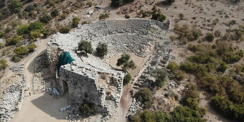 Antik kentin, tiyatrodaki döner perde sistemi, tanrılara bağış toplanan kumbara, dünyaca ünlü kaya mezarları, Karca ve Yunanca çift dilli yazıt gibi birçok “ilk” ile ünlendiğini aktaran Çörtlük, arkaik, klasik, Helenistik, Roma ve Bizans dönemlerinde yerleşim bulunan kentin daha sonra terk edildiğini dile getirdi.