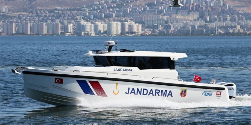 Jandarma ekipleri, İzmir’in Balçova ilçesindeki Levent Marina’da, “ASBOT KN-35” tipi 2 botu teslim aldı.