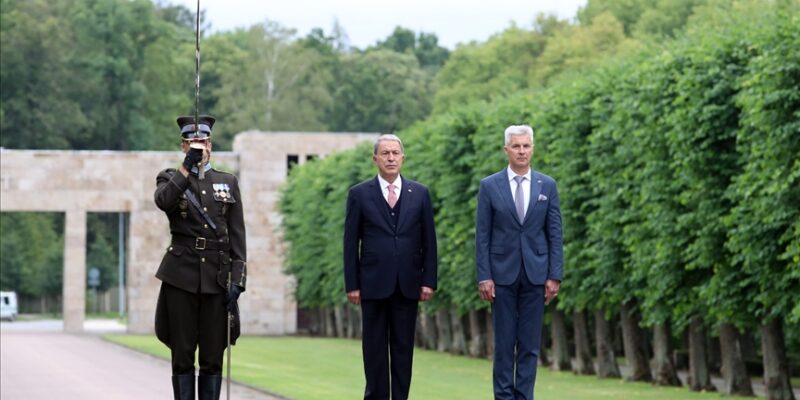Milli Savunma Bakanı Hulusi Akar, askeri törenle karşılandığı Letonya’da, Kahramanlar Mezarlığı’nı ziyaret etti.