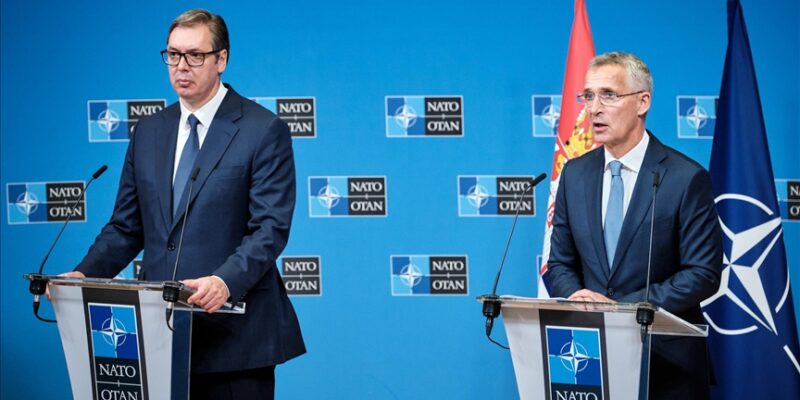 Stoltenberg, Sırbistan Cumhurbaşkanı Aleksandar Vucic ile NATO karargahında yaptığı görüşmenin ardından düzenlenen ortak basın toplantısında, son aylarda Kosova ile Sırbistan arasındaki gerginliğin yatıştırılması çağrısında bulundu.