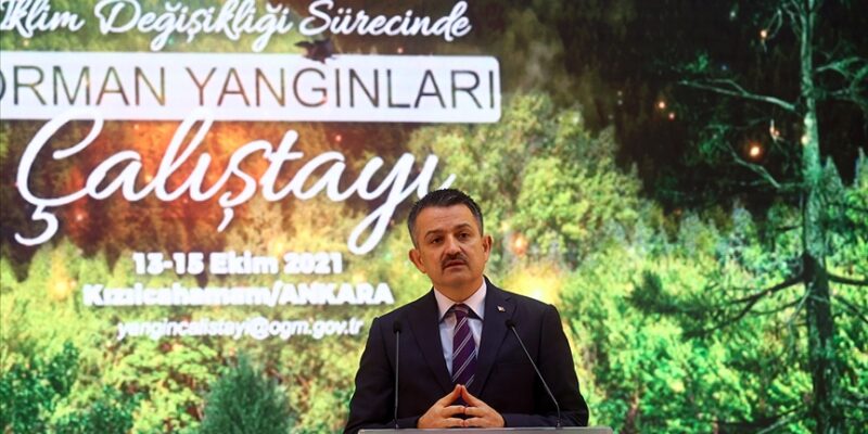 Tarım ve Orman Bakanı Bekir Pakdemirli, Kızılcahamam’da düzenlenen İklim Değişikliği Sürecinde Orman Yangınları Çalıştayı’na katıldı.