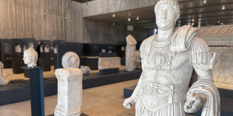Antik kentin kazı öncesi yüksekliğiyle eşit olacak şekilde tasarlanan müze, 3 bin metrekarelik sergi salonları dahil 10 bin metrekare kapalı alandan oluşuyor.