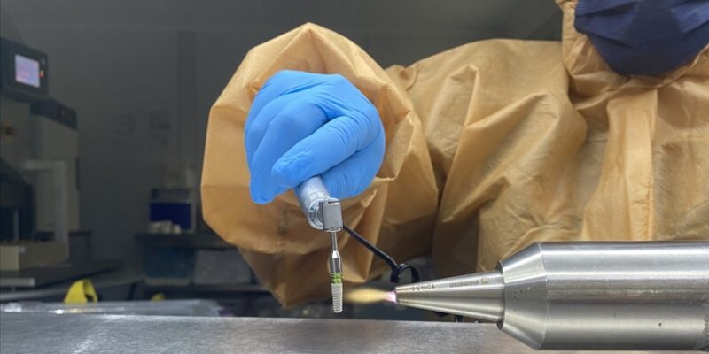 “Bunu biz daha da ileriye götürmek için plazma teknolojisini kullanıyoruz. Aslında maddenin dördüncü hali diyebileceğimiz bir teknoloji bu. Yani katı, sıvı ve gaz hali dışında plazma hali olduğunu söyleyebiliriz. Burada yüzeyi hidrofilik yapıyoruz, aynı zamanda yüzeyde kalan tüm kalıntıları ortadan kaldıran bir teknoloji. İmplantlar, diş kökü yerine kullanıldığından implantın kemik tarafından tutunması için kemik hücrelerine benzer nitelikte olması beklenir. Bu sebeple implant yüzey işlem proseslerinde implant yüzeyine kemik hücreleri büyüklüğünde gözenekler açılır. Kemik hücreleri implant yüzeyinde tutunma sağlayarak implantın yapay diş kökü görevini görmesini destekler. Bununla birlikte implantın yüzey enerjisinin artırılması ile yüzey hidrofilik hale getirilerek kemik tarafından tutunması, erken iyileşme döneminde operasyonun başarısını artırır. Bu yüzey aktifleştirme prosesi firmamıza özeldir, SLA Aktif teknoloji olarak nitelendirilir.”