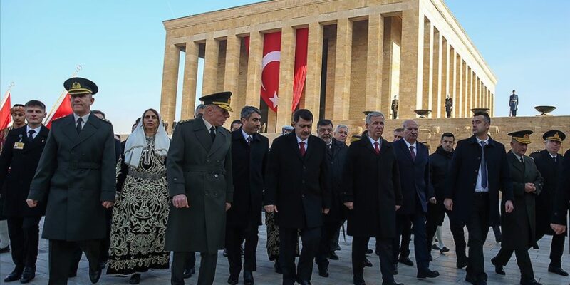 Aslanlı Yol’dan yürüyen Vali Şahin başkanlığındaki heyet, Atatürk’ün mozolesine çelenk sundu.